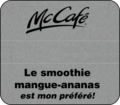 McCafe Insignes non personnalisé, Insignes d'équipier, "le smoothie mangue" argent (paquet 10), à personnaliser avec une étiqueteuse